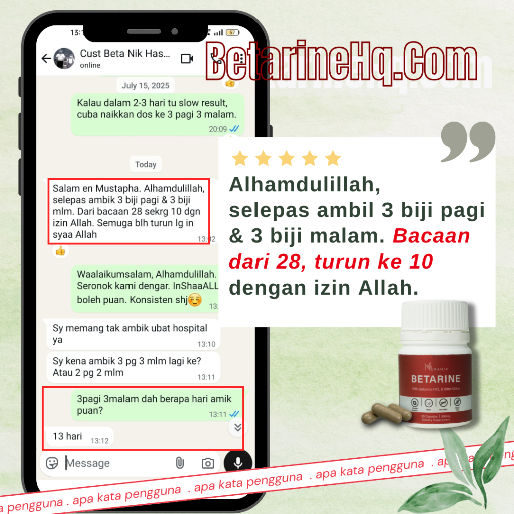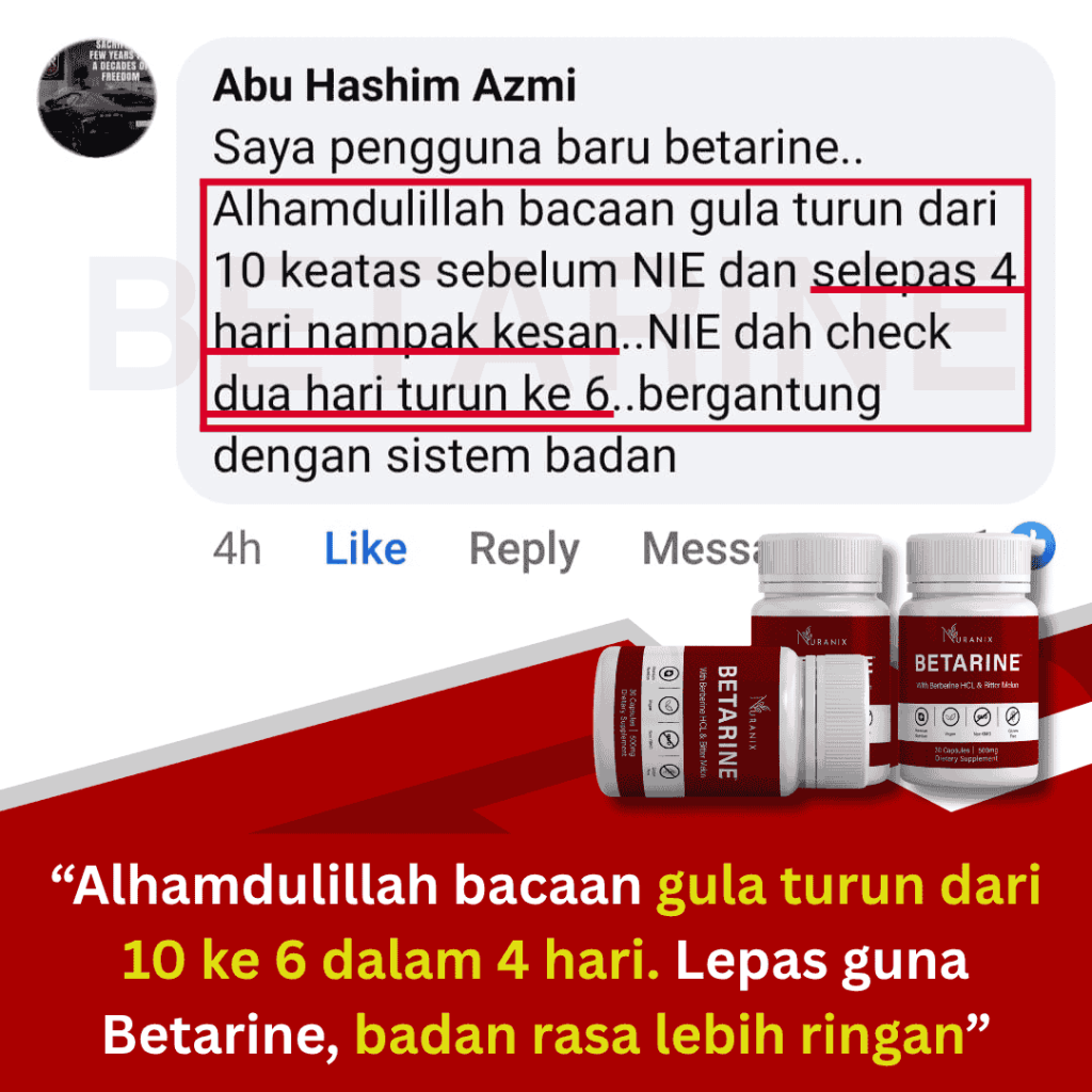 Anda dapat jaminan sekuat ini kerana kami ada bukti & pengalaman membantu ramai pesakit yang mempunyai masalah SAMA SEPERTI ANDA sebelum ini dan berjaya membuktikan BETARINE keluaran NURANIX ini memang TERBUKTI BERKESAN!